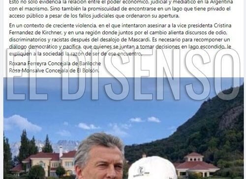 La causa del viaje a Lago Escondido tuvo su inicio el 14 de octubre de 2022 cuando la concejal Roxana Ferreyra, quién en su Facebook aparece militando junto al Ministro Soria, manifestó su preocupación por las “versiones” que referían la presencia de jueces federales, referentes políticos de JxC y empresarios mediáticos en la residencia de Joe Lewis en Lago Escondido.