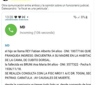 A las 13:13 el usuario de Twitter @FabianWaldman subio a su cuenta copia de una nueva filtración de chats atribuidos a Marcelo D’Alessandro en la que este último mantiene un intercambio con un usuario de nombre “Sebastián Ramos”.