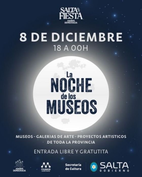 La Noche de los Museos es organizada, por la Secretaría de Cultura, a través de la Subsecretaría de Patrimonio Cultural, y a lo largo de los años se ha instalado en la agenda de salteños, salteñas y turistas que aprovechan para disfrutar de estos espacios vivos y conectar con el arte y nuestro patrimonio.