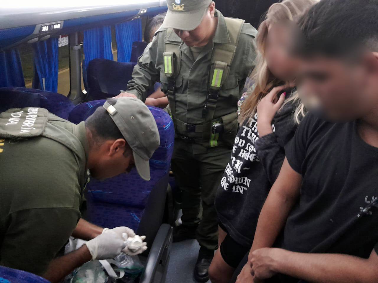 Los gendarmes registraron el interior del rodado y fueron alertados por dos bolsas de nylon halladas en el portaequipaje de dos butacas.