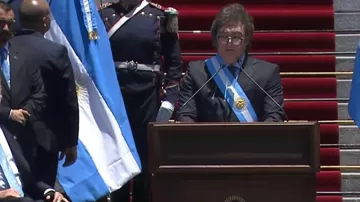 “Hoy comienza una nueva era en la Argentina; hoy termina una larga era de declive y comenzamos la reconstrucción del país. Los argentinos de manera contundente han expresado una voluntad de cambio que ya no tiene retorno. No hay vuelta atrás”, comenzó Milei su primer discurso como presidente.