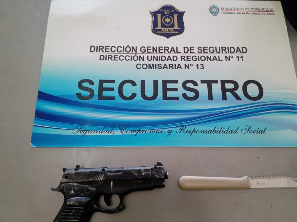 Luego de mediar palabras lograron aprehenderlo y secuestraron una pistola de plástico, y un cuchillo, quedando a disposición de la justicia.