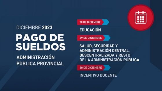 Hoy jueves 28 se depositó los haberes para educación y mañana viernes 29 para el sector de salud, seguridad, administración central, descentralizada y resto de la administración pública. El 30 de diciembre se depositará incentivo docente.