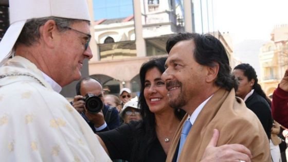 El gobernador Gustavo Sáenz y su esposa Elena Cornejo participaron esta mañana de la última jornada del Triduo de Pontificales que se realizó en la Catedral Basílica. El oficio religioso se celebró en el pórtico del Templo Mayor de Salta en honor de la solemnidad del Señor del Milagro y fue oficiada por el arzobispo de Buenos Aires, Jorge García Cuerva.