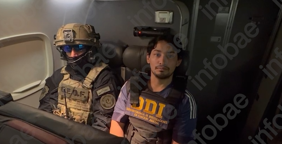 A sus lados, dos policías del grupo GEOF lo aseguraban. El efectivo le informó que había llegado a Argentina y que quedaba a disposición del Estado argentino y del Juzgado que interviene en el caso -el N°4 de Garantías de La Matanza-.