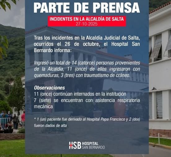 El Hospital San Bernardo informó sobre la atención médica tras los hechos ocurridos el 26 de octubre en la Alcaldía Judicial de Salta: