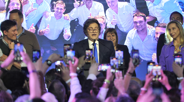 En medio de la expectativa por el futuro del Gabinete, el Presidente dio un primer mensaje apaciguador de la interna al agradecerles “a los dos colosos que han sido los arquitectos de este triunfo, Santiago Caputo y Karina Milei”.