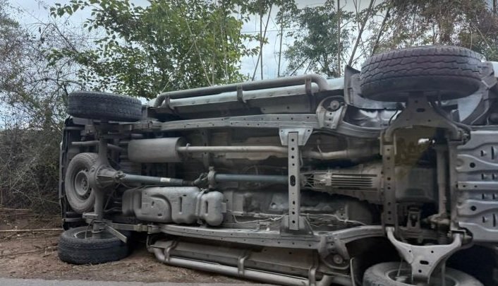 El vehículo quedó con las ruedas hacia un costado y parte del chasis expuesto, lo que muestra la violencia del movimiento previo al vuelco. A simple vista, no se observan otros autos involucrados.