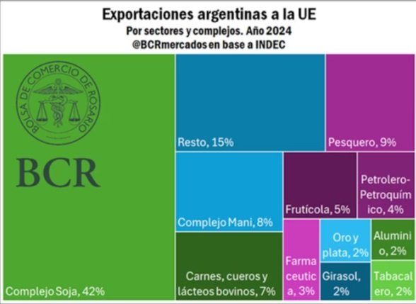 El peso de la Unión Europea (UE) en las exportaciones de Argentina toca mínimos históricos, según analizó un informe de la Bolsa de Comercio de Rosario (BCR) elaborado por Guido D’Angelo y Emilce Terré.