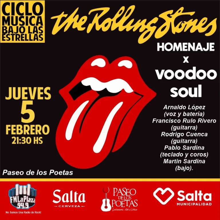 La última noche del ciclo tendrá como protagonista a la banda Voodoo Soul, que interpretará clásicos del histórico grupo británico en un show al aire libre sobre calle Esteco, uno de los corredores culturales y gastronómicos más concurridos de la ciudad.