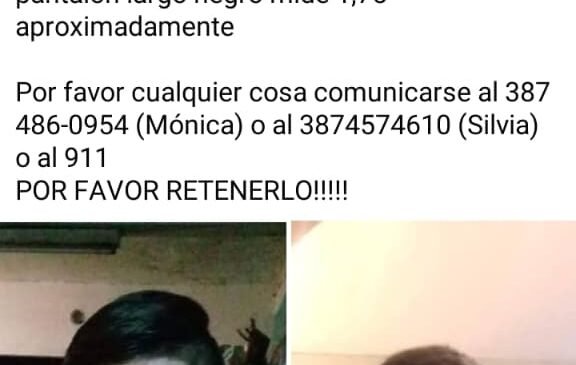 Facundo se fue de su casa y tiene TDA 24 febrero, 2026 Esto se conocio en la red de Facebook donde una pariente necesita que los salteños le colaboren con cualquier información para llegar con el paradero de su sobrino.