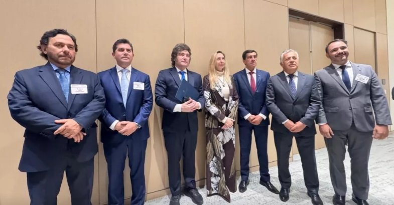 Sáenz acompañó la presentación presidencial junto a otros mandatarios provinciales y la delegación nacional, reafirmando el mensaje de institucionalidad y previsibilidad que la provincia viene sosteniendo en cada encuentro de esta gira internacional.