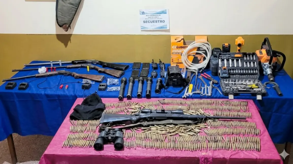uno de los procedimientos más relevantes se llevó a cabo en el galpón, departamento metán, donde seis hombres fueron detenidos por el robo de herramientas en una finca sobre la ruta nacional 16. los allanamientos también se extendieron a río piedras, donde se incautaron armas de fuego, cartuchos, radios y otros elementos clave para la causa.