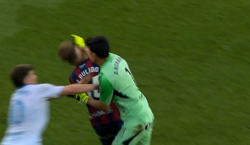 Lejos de retirarse tras la sanción, Andrada perdió totalmente el control. Tras ver la roja, regresó de inmediato hacia Pulido y le propinó un puñetazo directo al rostro, que dejó al jugador en el césped con el ojo morado. La reacción del argentino desató una batalla campal en el terreno de juego, con jugadores y miembros de ambos cuerpos técnicos interviniendo para separar a los protagonistas y evitar que la situación escalara aún más.