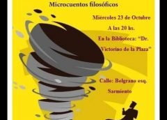 El miércoles 23 de octubre se realizará la presentación del 8° libro del filósofo, músico y dramaturgo, Carlos Yudi Machur. En esta oportunidad la obra de microcuentos filosóficos fué denominada “Del Tiempo Argento”, el epílogo fue realizado por la escritora, actriz y docente: Ana Carolina Beltrán. La exposición tendrá lugar en la Biblioteca “Dr. Victorino de la Plaza” -calle: Belgrano...