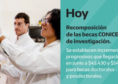 El Gobierno Nacional anunció una recomposición en las becas doctorales y posdoctorales del CONICET Tras reunirse con el presidente Alberto Fernández, el jefe de Gabinete Santiago Cafiero y el ministro de Ciencia, Tecnología e Innovación, Roberto Salvarezza, anunciaron un plan de recomposición de las becas doctorales y posdoctorales del Consejo Nacional de Investigaciones Científicas y Técnicas (CONICET) y la Agencia...
