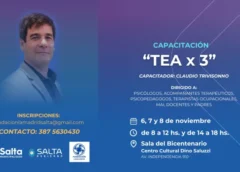La Municipalidad de Salta acompañará la capacitación “TEA X 3”, que se dictará los días 6, 7 y 8 de noviembre en la Casa del Bicentenario (Av. Independencia 910). El seminario, a cargo del Mg. Claudio Trivisonno, se desarrollará en doble jornada —08:00 a 12:00 y 14:00 a 18:00— y está dirigido a profesionales, familias, cuidadores y público interesado en...