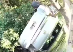 Leer Mas...Terrible siniestro en barrio Santa Cecilia: el auto quedó recostado en un alambrado